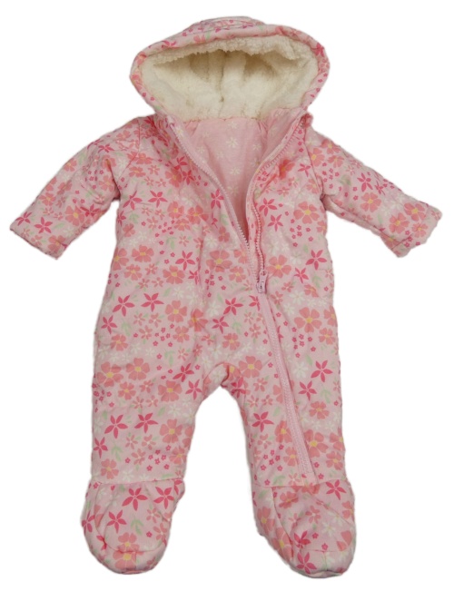 Světlerůžová květovaná manšestrová zateplená kombinéza s kapucí Dunnes stores