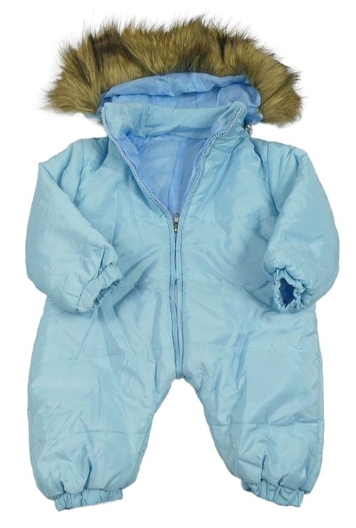 • Světlemodrá šusťáková zimní kombinéza s odepínací kapucí