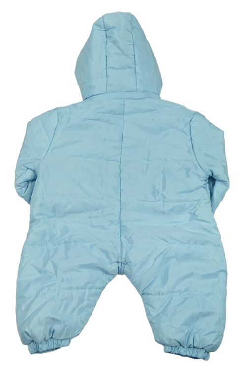 Světlemodrá šusťáková zimní kombinéza s odepínací kapucí