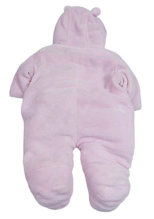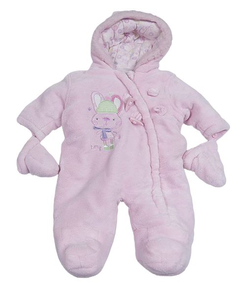 Světlerůžová chlupatá zateplená kombinéza s králíčkem a kapucí+ rukavice
