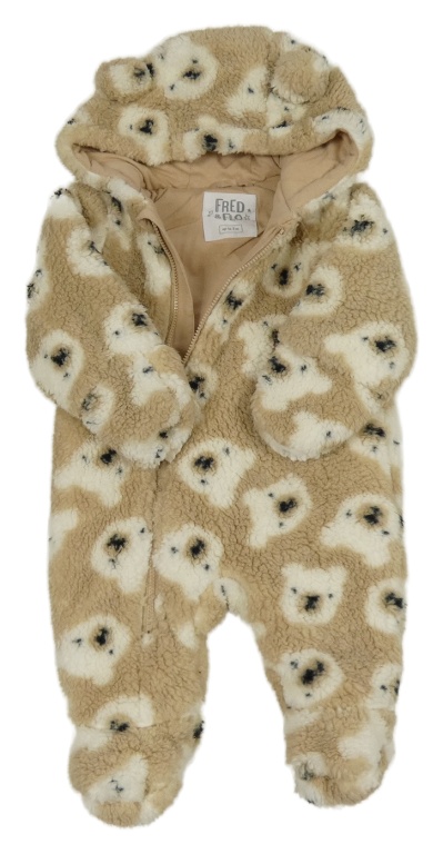 • Béžová huňatá zateplená kombinéza s medvídky a kapucí F&F