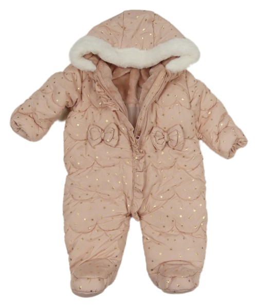 Světlerůžová šusťáková zimní kombinéza s hvězdičkami a kapucí Matalan