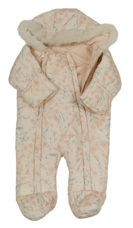 Světlerůžová šusťáková květovaná zimní kombinéza s kapucí Matalan
