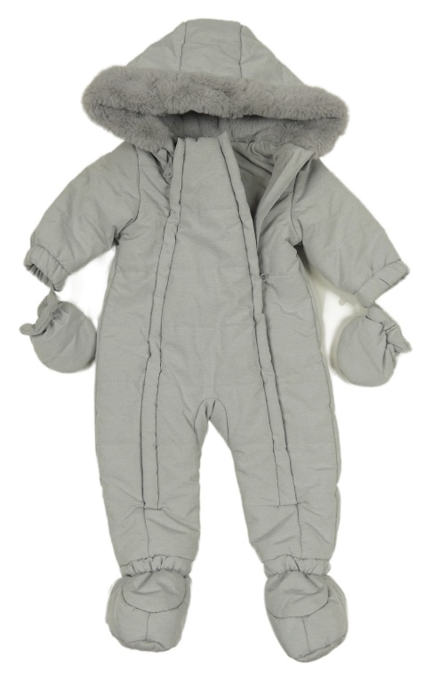 • Šedá šusťáková zimní kombinéza s kapucí + rukavice