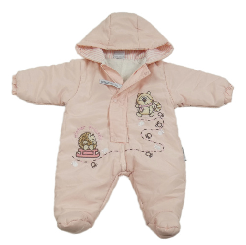 Růžová šusťáková zimní kombinéza se zvířaty a kapucí