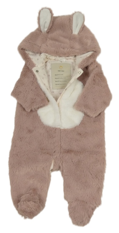 Nové - starorůžová kožešinová podšitá kombinéza s kapucí s oušky Next