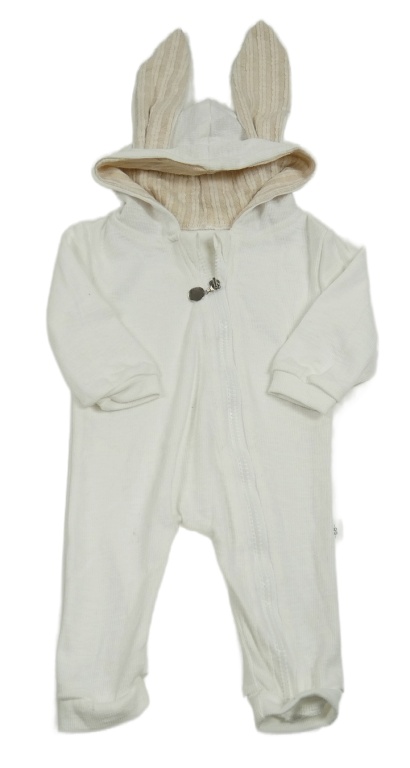 Bílý lehká kombinéza s ušima a kapucí