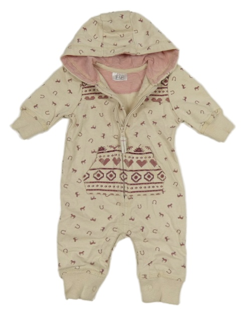 Smetanovo-fialová vzorovaná tepláková kombinéza s koníky a kapucí F&F