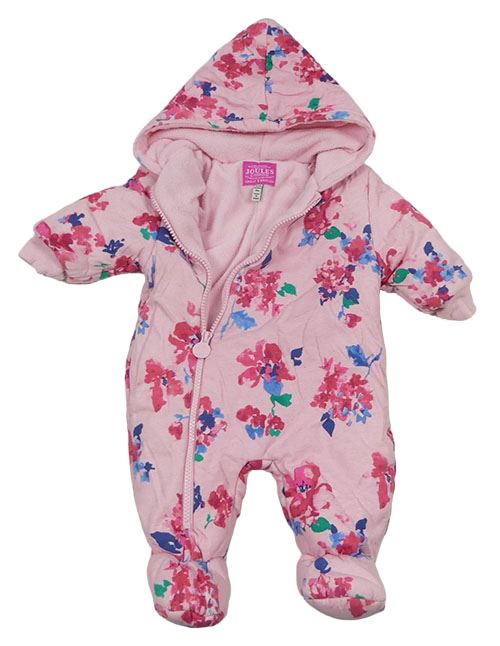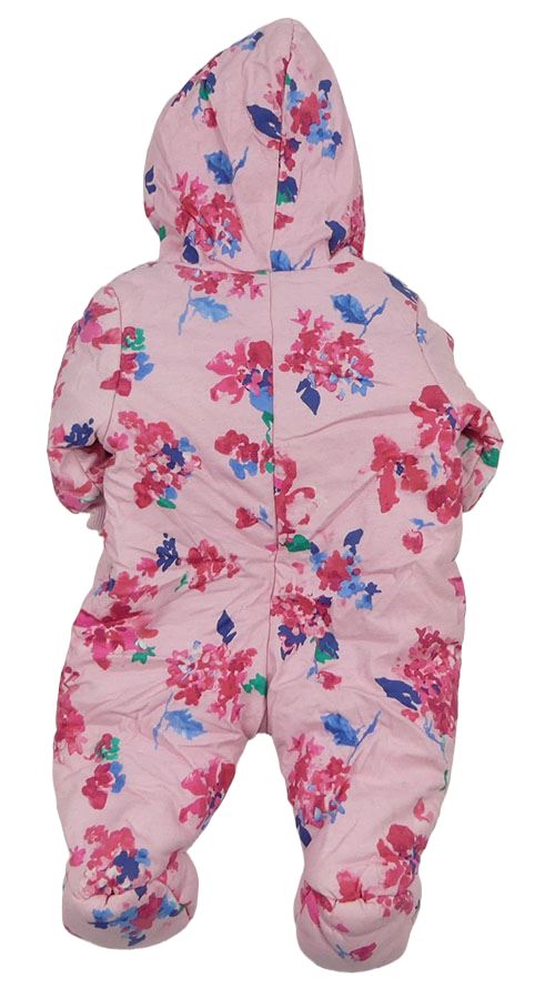 Světlerůžová tepláková zateplená kombinéza s květy a kapucí Joules