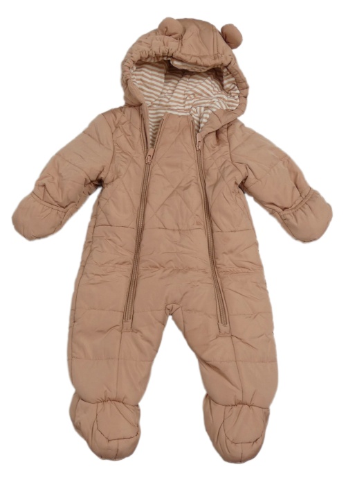 Pudrová prošívaná šusťáková zimní kombinéza s kapucí s oušky George