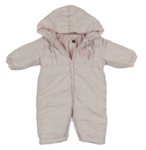 Světlerůžová šusťáková zimní kombinéza s 3D květem a kapucí