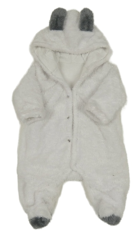 Bílá chlupatá podšitá kombinéza s kapucí s oušky