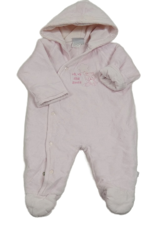 Světlerůžová sametová zateplená kombinéza s medvědem a kapucí