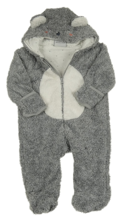 • Šedo-bílá chlupatá podšitá kombinéza s kapucí - koala Topomini