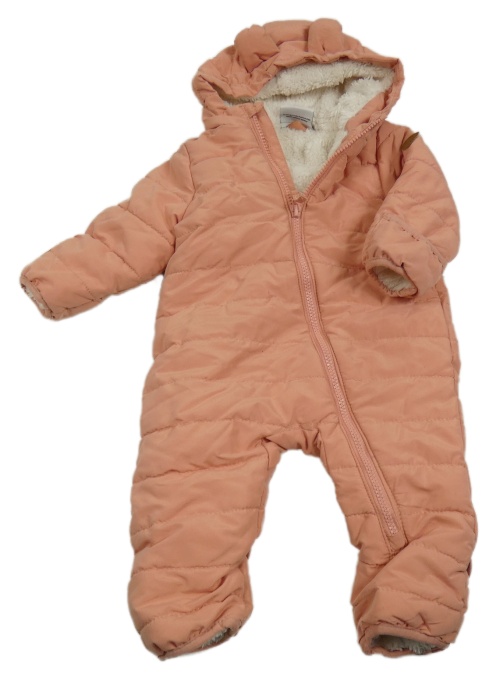 Broskvová šusťáková zimní prošívaná kombinéza s kapucí Topomini