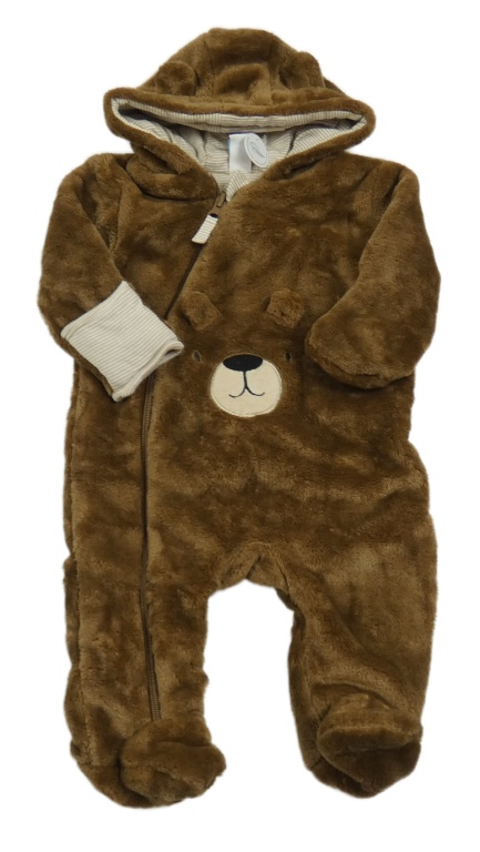 Nové - Hnědá chlupatá podšitá kombinéza s kapucí - medvěd Topolino