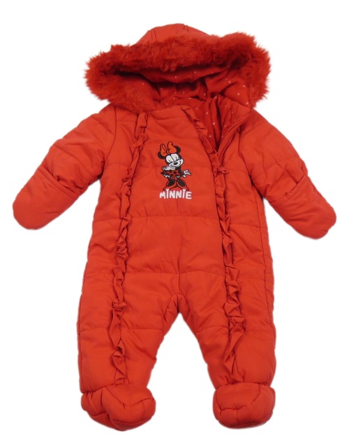 Červená šusťáková zimní kombinéza s Minnie a kapucí George