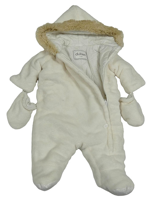 • Smetanová chlupatá zateplená kombinéza s kapucí + rukavice