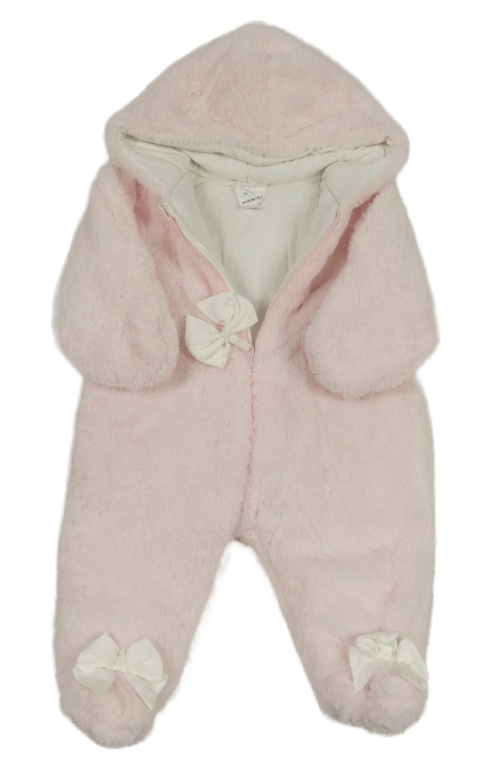 Světlerůžová kožešinová zateplená kombinéza s kapucí