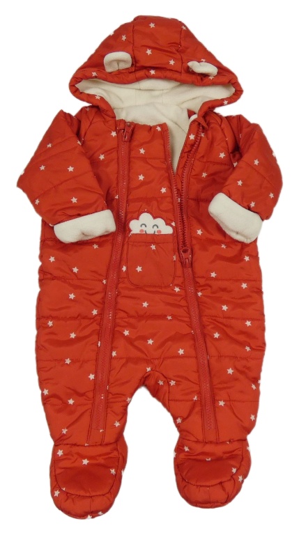 Červená šusťáková zimní kombinéza s hvězdami a kapucí St. Bernard