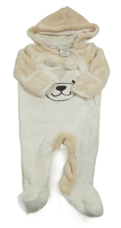 • Nové - světlebéžovo-smetanová plyšová kombinéza s medvídkem a kapucí baby mack