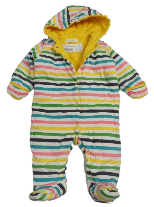Žluto-bílo-barevná pruhovaná tepláková zateplená kombinéza s kapucí