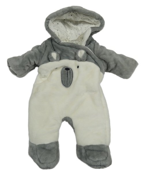 Šedo-bílá plyšová zateplená kombinéza s medvědem a kapucí F&F