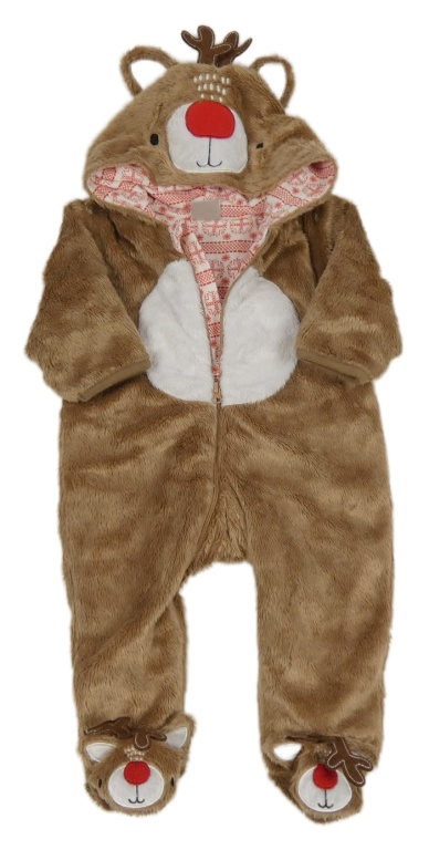 Hnědo-bílá plyšová kombinéza s kapucí - sob