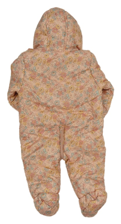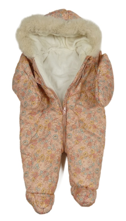 Růžová květovaná šusťáková zimní kombinéza s volánky a kapucí George