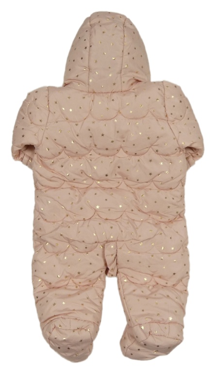 • Světlerůžová prošívaná šusťáková zimní kombinéza se zlatými hvězdičkami a mašlemi a volánkem a kapucí s kožešinou Matalan
