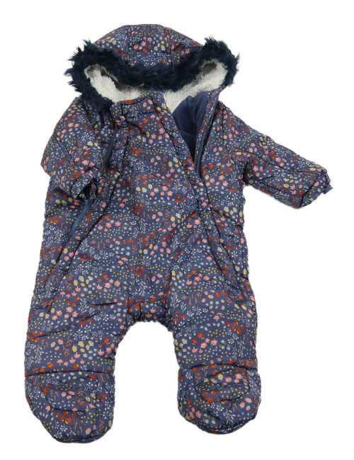 • Tmavomodrá šusťáková zimní kombinéza s kytičkami a houbičkami a žaludy a kapucí s kožešinou F&F