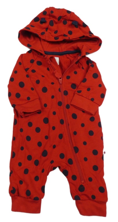 Červená puntíkatá tepláková kombinéza s kapucí s tykadly - beruška C&A