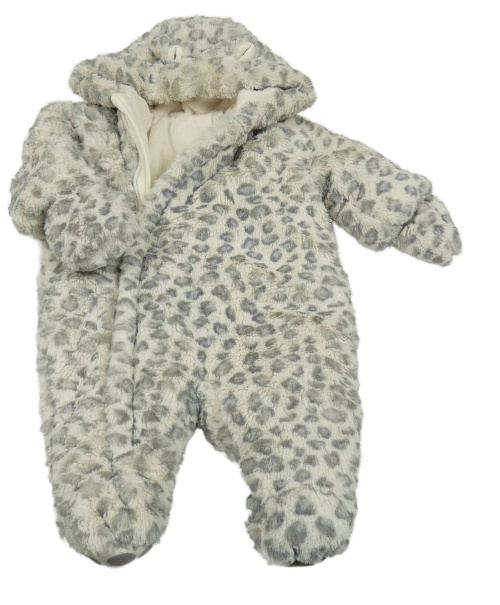 • Smetanová chlupatá zateplená kombinéza s leopardím vzorem a kapucí+ rukavice Mothercare