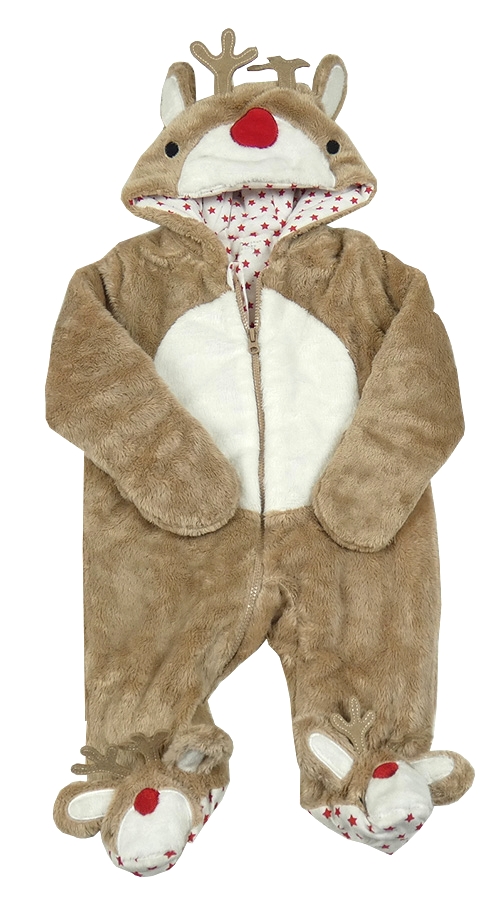 • Hnědo-bílá chlupatá zateplená kombinéza s kapucí - sob Primark