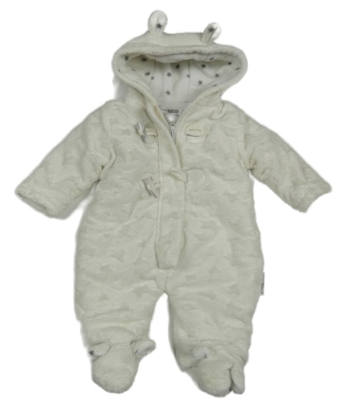 • Bílá chlupatá zateplená kombinéza s hvězdičkami a kapucí Nursery Time