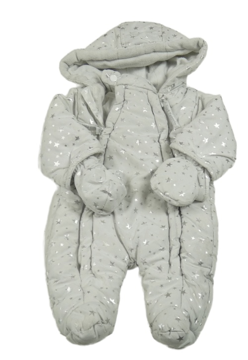 • Světlešedá šusťáková zimní kombinéza s hvězdičkami a kapucí + rukavice Just too Cute