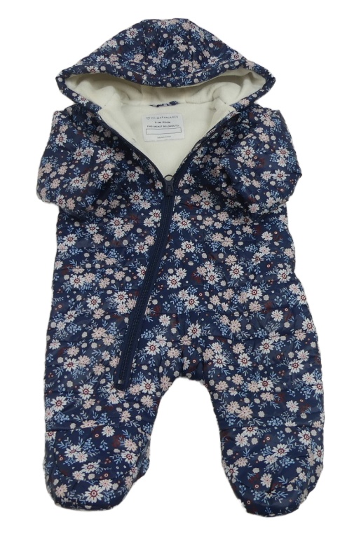 Tmavomodrá květovaná šusťáková zateplená kombinéza s kapucí Primark