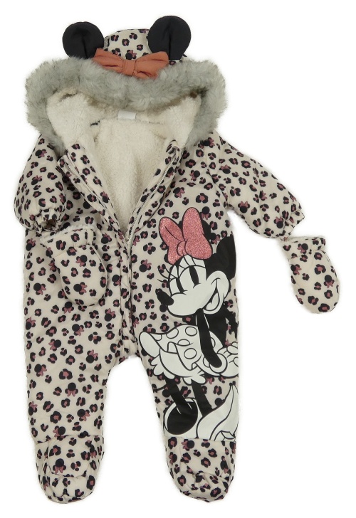• Béžová vzorovaná šusťáková zimní kombinéza s Minnie a kapucí + rukavice Disney