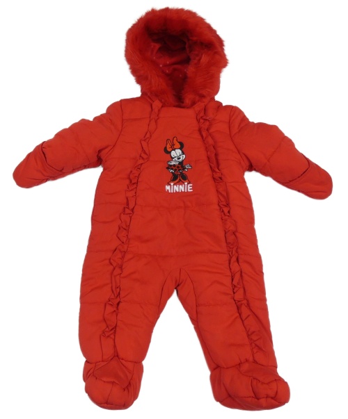 Červená šusťáková zimní kombinéza s Minnie a kapucí George