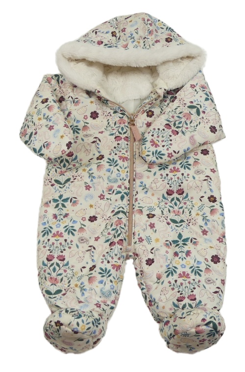 Smetanová květovaná šusťáková zimní kombinéza se ježky a kapucí Nutmeg