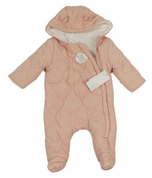 Nové - Světlerůžová tepláková prošívaná zateplená kombinéza s kapucí s oušky George
