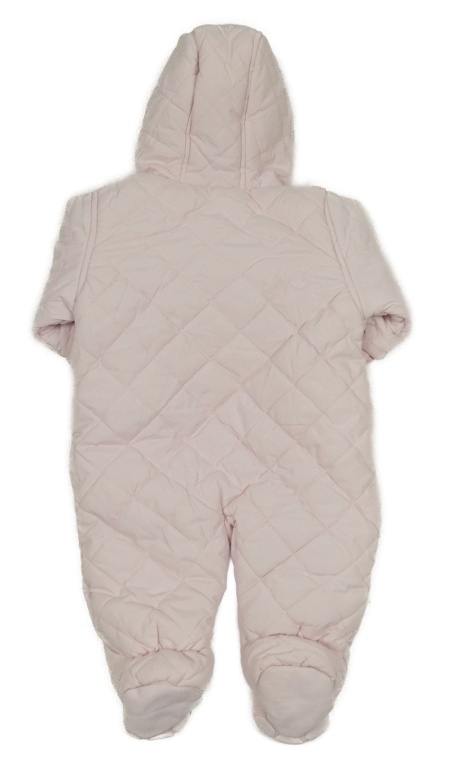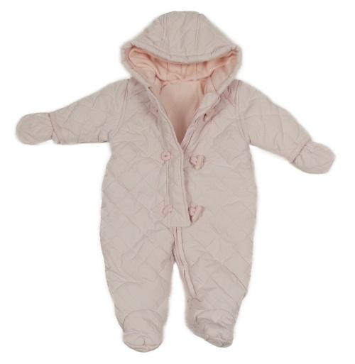 • Světlerůžová šusťáková prošívaná zimní kombinéza s kapucí + rukavice Mothercare