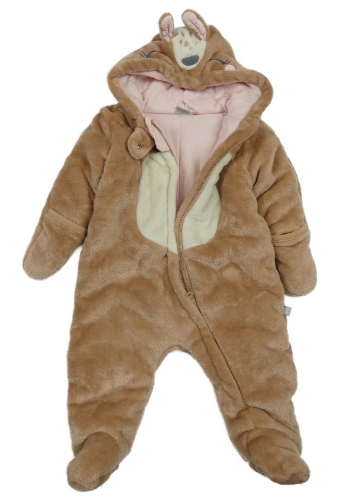 Starorůžovo-bílá chlupatá zateplená kombinéza s čumákem na kapuci