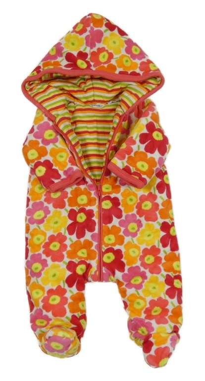 Barevná květovaná sametová zateplená kombinéza s kapucí