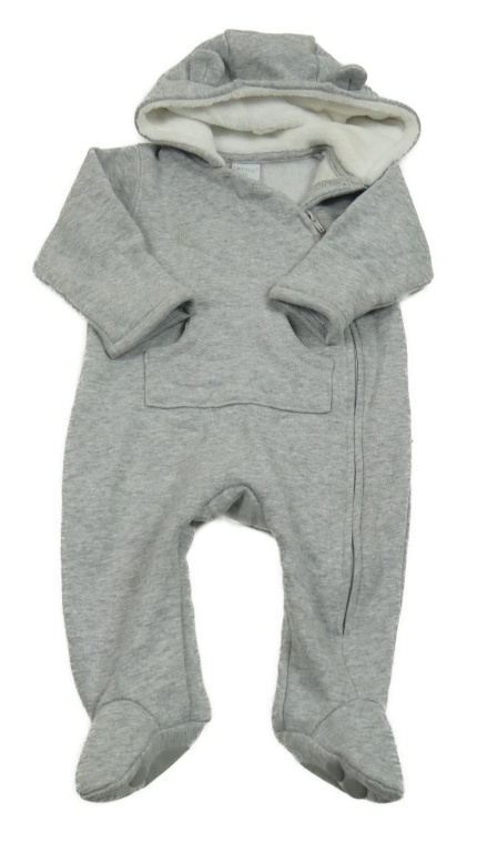 • Šedá melírovaná teplá tepláková kombinéza s kapsou a medvídkem a kapucí s oušky LITTLE