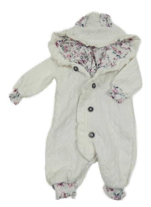 Bílá vzorovaná podšitá kombinéza s kapucí
