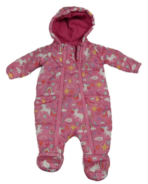 Růžová šusťáková zimní kombinéza s jednorožci a kapucí St. Bernard