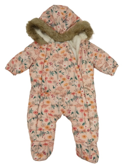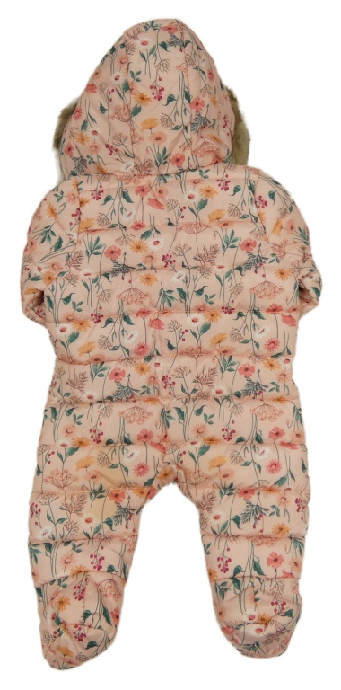 Růžová květovaná šusťáková zimní kombinéza s kapucí s kožešinou F&F