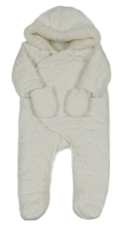 Bílá šusťáková prošívaná zimní kombinéza s kapucí+ rukavice Zip Zap