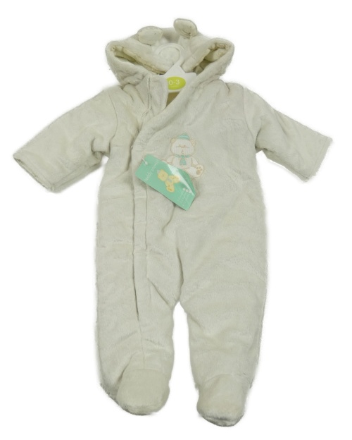 Nové - bílá plyšová zateplená kombinéza s medvídkem a kapucí s oušky Special Delivery